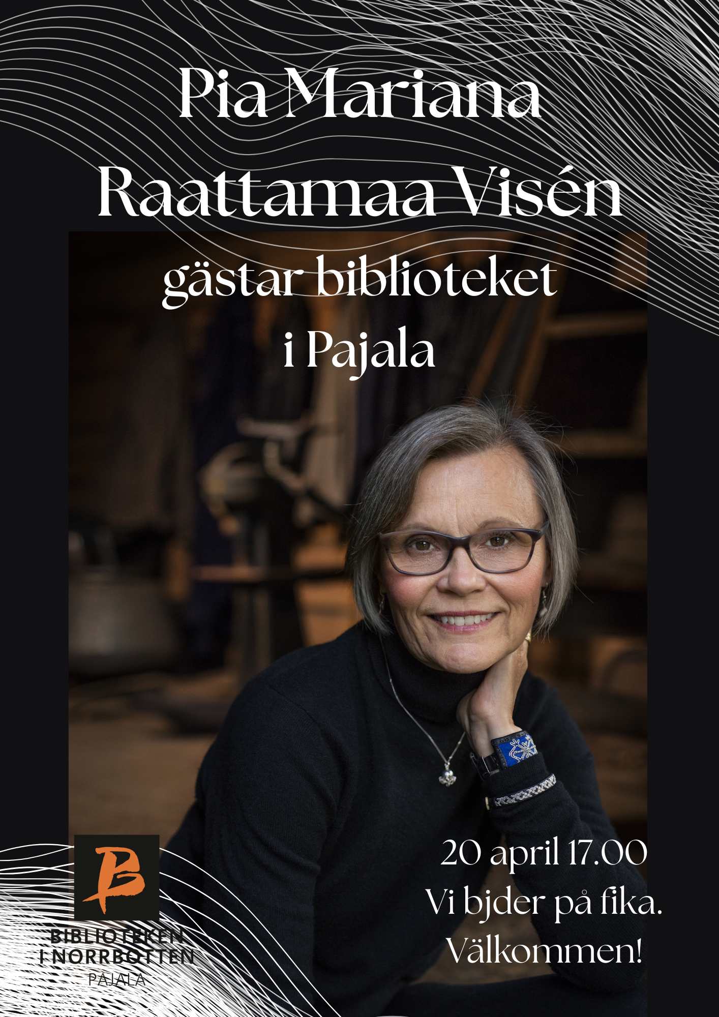 Författaren Pia Mariana Raattamaa Visén besöker Pajala bibliotek och berättar om sina romaner Det rinner en älv genom Saivomuotka by och Sammanflätning.