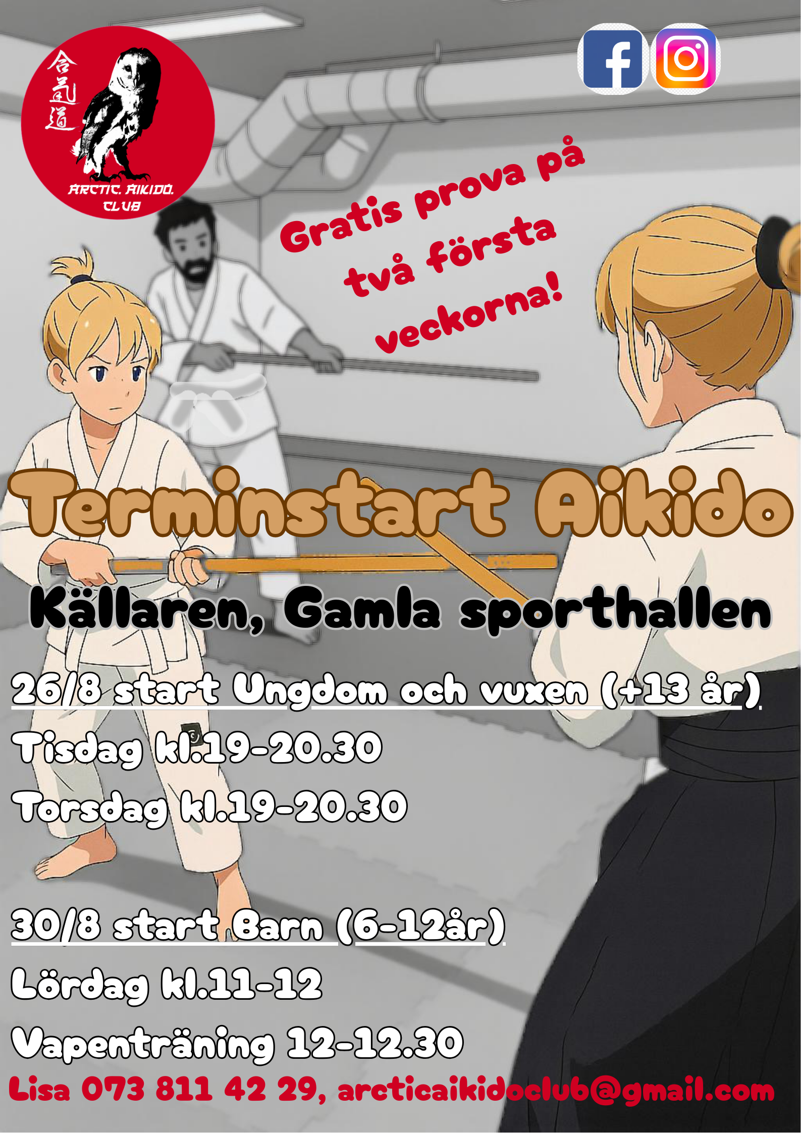 Lördag kl.11-12 Taijutsu (obeväpnad träning) kl.12-12.30 Bukiwasa (vapenträning)