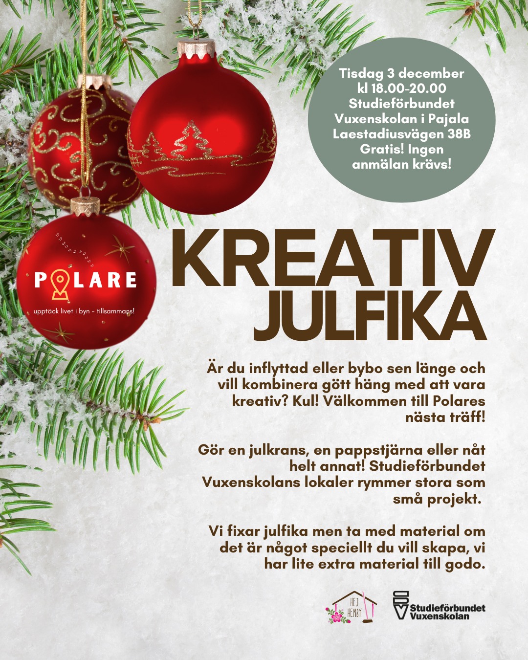 Välkommen önskar Hej Hemby och Studieförbundet Vuxenskolan i Pajala.
