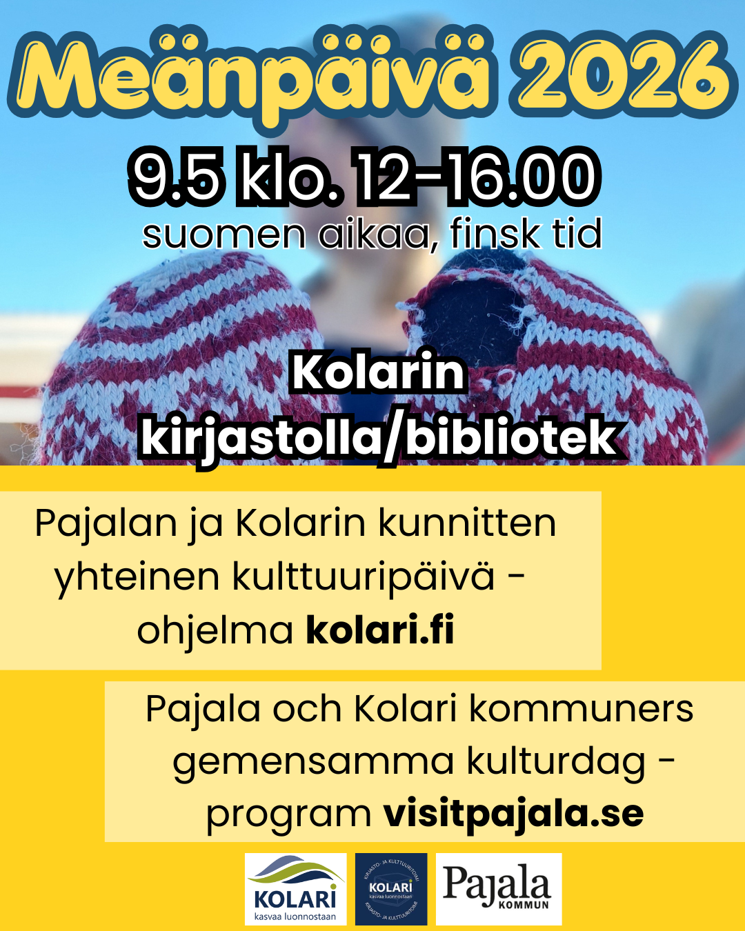 Pajala och Kolari kommuners gemensamma kulturdag, i år på Kolari bibliotek // Pajalan ja Kolarin kunnitten yhteinen kulttuuripäivä, tänä vuona Kolarin kirjastossa. OBS! [...]